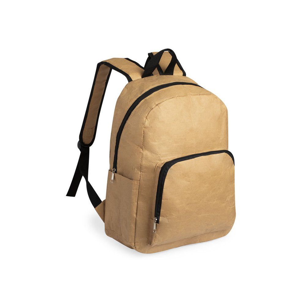 Innovadora mochila en papel laminado ultra resistente de 130 g/m2, resistente a las salpicaduras de agua. Compartimento principal y amplio bolsillo en frontal con cierres de cremallera. Asa de transporte y accesorios en color negro, con cintas de hombros acolchadas y ajustables. Cintas Acolchadas.